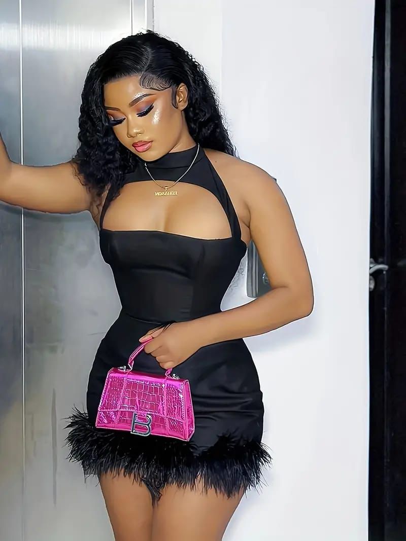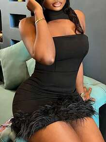 Slayr Ladies' Sexy Feather Trim Sleeveless Dress